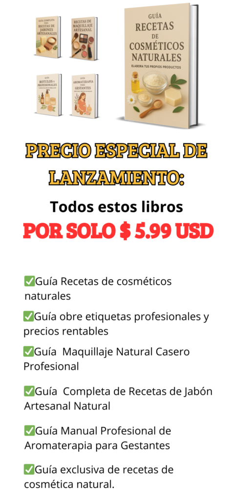 Aprenderás a crear etiquetas profesionales, calcular precios rentables, estandarizar tu cosmética natural y transformar tus productos artesanales en un negocio seguro, atractivo y rentable.
